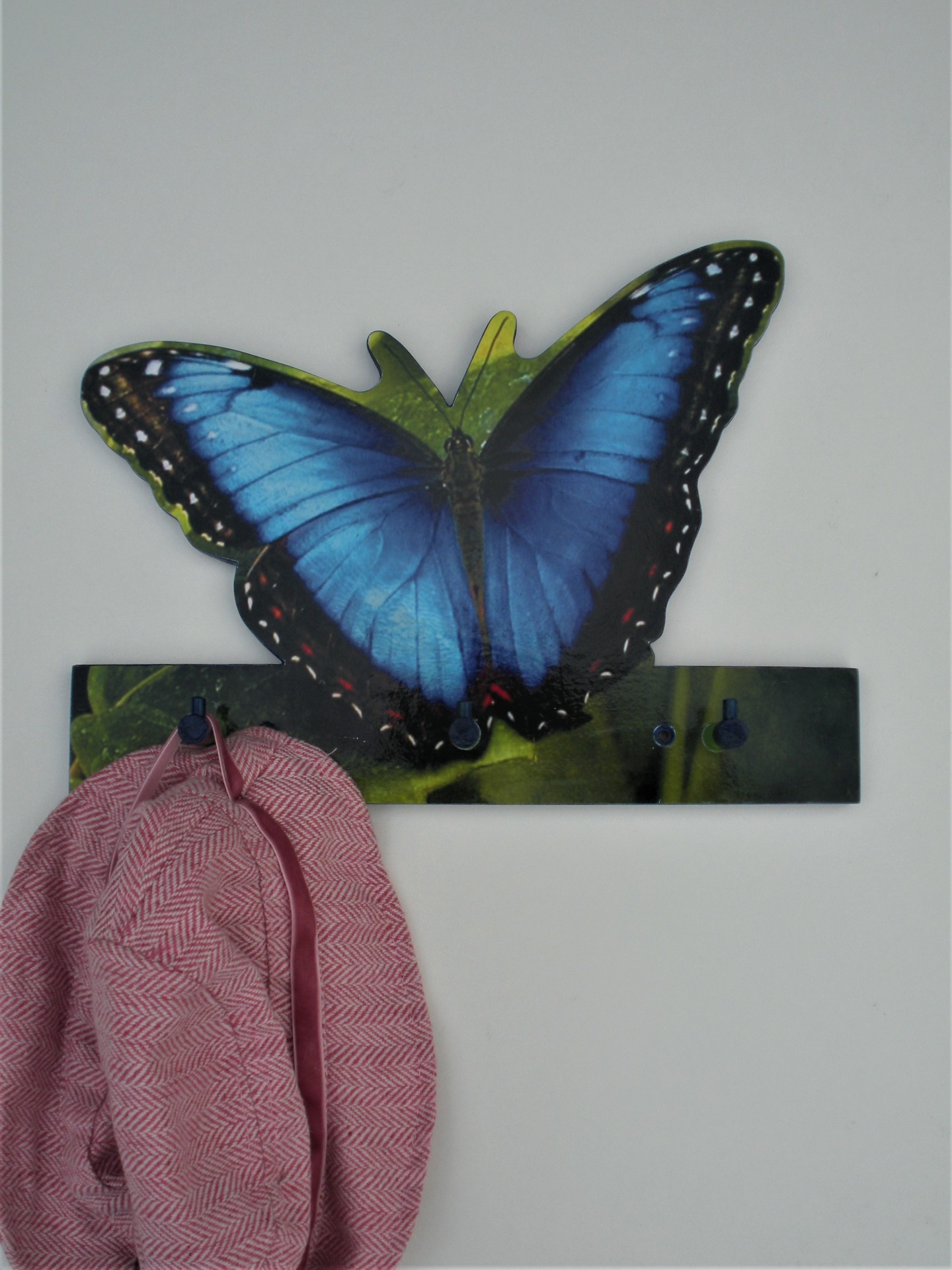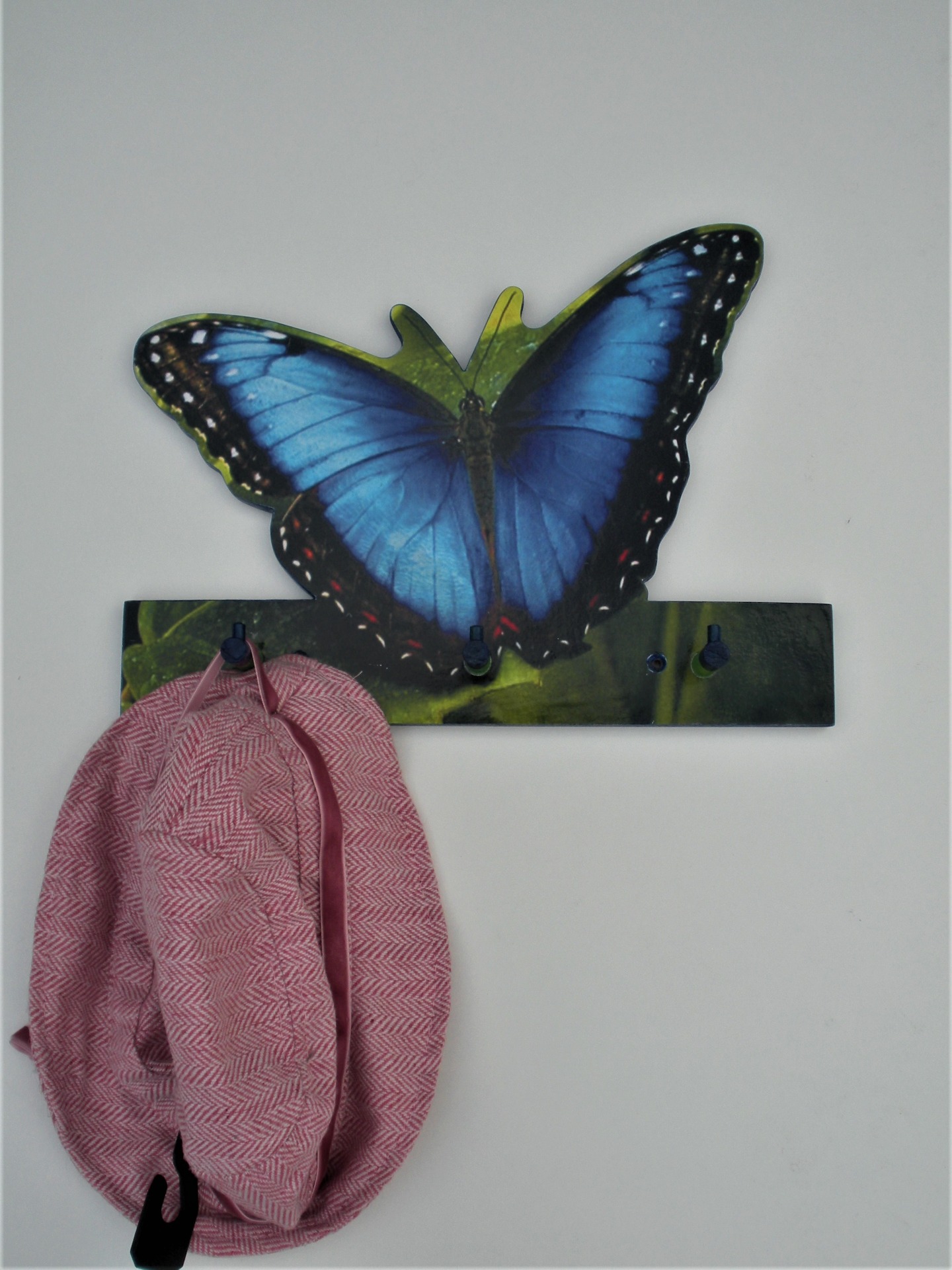 Cabide em madeira com três pinos e 30 cm de comprimento.